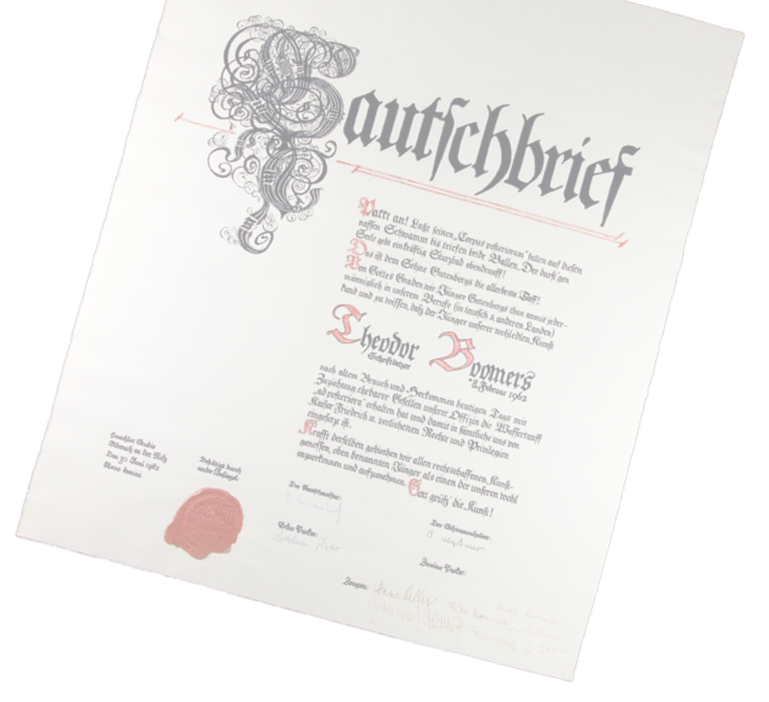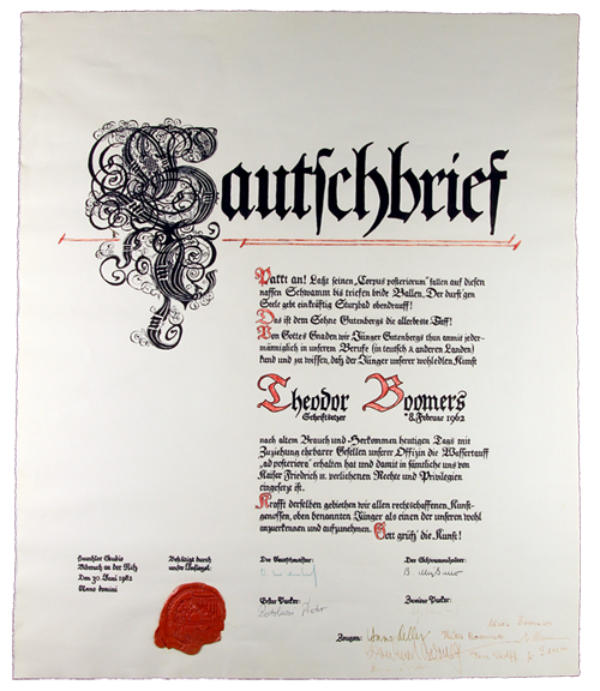 Dipl.-Schriftsetzer Theodor Boomers... ist Jahrgang 1962 und trat nach erfolgreichem 2-jährigen Studiumim Hauchler-Studio in Biberach a.d.Riß (Privatschule für die Druckindustrie)mit Abschluss zum Diplom-Schriftsetzer vor der IHK Ulm im Jahr 1982 in den elterlichen Betrieb ein.Durch den frühen Tod seines Vaters 1984 musste er unerwartet die Verantwortungfür die Druckerei übernehmen.Am 6. Februar 1990 absolvierte er vor der Industrie- und Handelskammer Essen die Meisterprüfung zum Industriemeister Druck - Fachrichtung Satzherstellung.Seit 1991 ist er Inhaber der Druckerei boomers-und-esser.